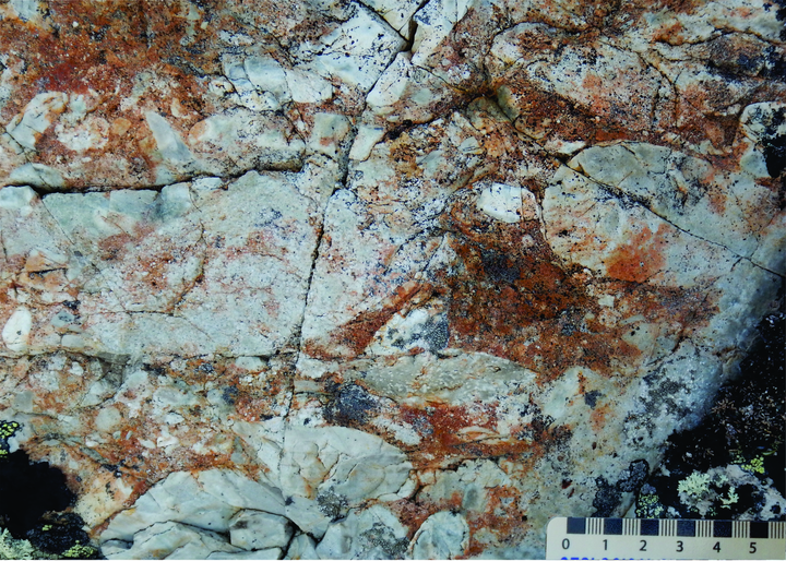 Conglomerate: comprising light-weathering, fine-grained, felsic volcanic clasts.