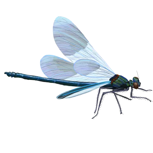 Dragonflies have a long and slender abdomen, long membranous wings not folded back over the abdomen. They have short antennae and big eyes. Dragonflies are important as predators of mosquitoes, black flies and other insects.
