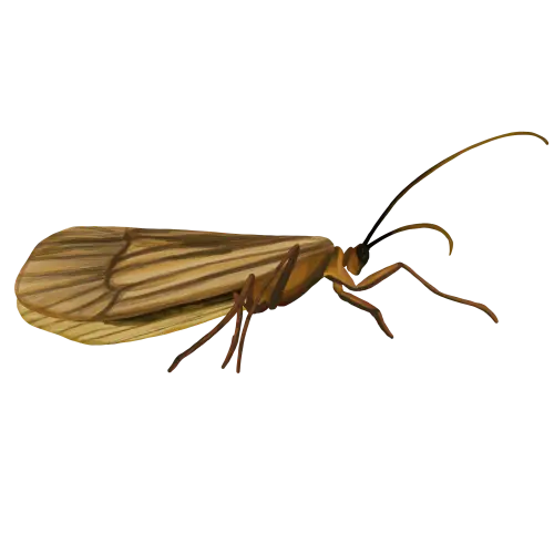 Caddisflies have hairy wings and their antennae are as long or longer than their bodies. They resemble moths. Larvae live in water and adults are mostly nocturnal. They have a clumsy and jerky flight. They are important as food for freshwater fish.