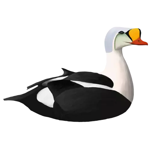 Main Photo Credit: King Eider by Ron Knight, 2014. https://en.wikipedia.org/wiki/King_eider#/media/File:King_Eider_(Somateria_spectabilis)_(13667616745).jpg. Licenced with CC BY 2.0, https://creativecommons.org/licenses/by/2.0. Second Photo Credit: King Eider Female by Zak Pohlen, 2015. https://wordpress.org/openverse/image/bc54a805-7f32-43bb-a23a-aa839c607ee7. Licenced with CC BY-NC-SA 2.0, https://creativecommons.org/licenses/by-nc-sa/2.0. Third Photo Credit: King Eider Nest by USFWS Alaska, 2018. https://wordpress.org/openverse/image/e0138478-507b-4492-a4da-5cf580ca8df7. Licenced with Public Domain.