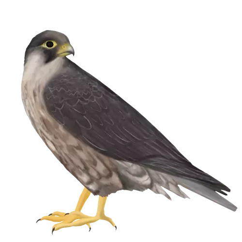The Peregrine Falcon is a predatory bird that is known for its flying speed, reaching over 200 mph and making it the fastest member of the animal kingdom. Predominantly consuming small birds, their diets may also expand to small rodents and insects. It mates for life and nests on high cliffs.
