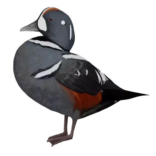 Main Photo Credit: Harlequin Duck by Peter Massas, 2010. https://www.flickr.com/photos/23505652@N03/4313355866/. Licenced with CC BY-SA 2.0, https://creativecommons.org/licenses/by-sa/2.0. Second Photo Credit: Harlequin Duck (female) by Mick Thompson, 2019. https://www.flickr.com/photos/mickthompson/48848658408/in/photostream/. Licenced with CC BY-NC 2.0, https://creativecommons.org/licenses/by-nc/2.0/.